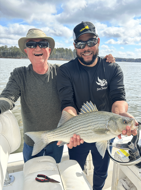 I had the pleasure of taking Kathleen and Alex out on February 8th to go after Hybrid and Striped Bass here on Lake Oconee. We caught 8 and Alex said that this Hybrid is the biggest fish he has ever caught.